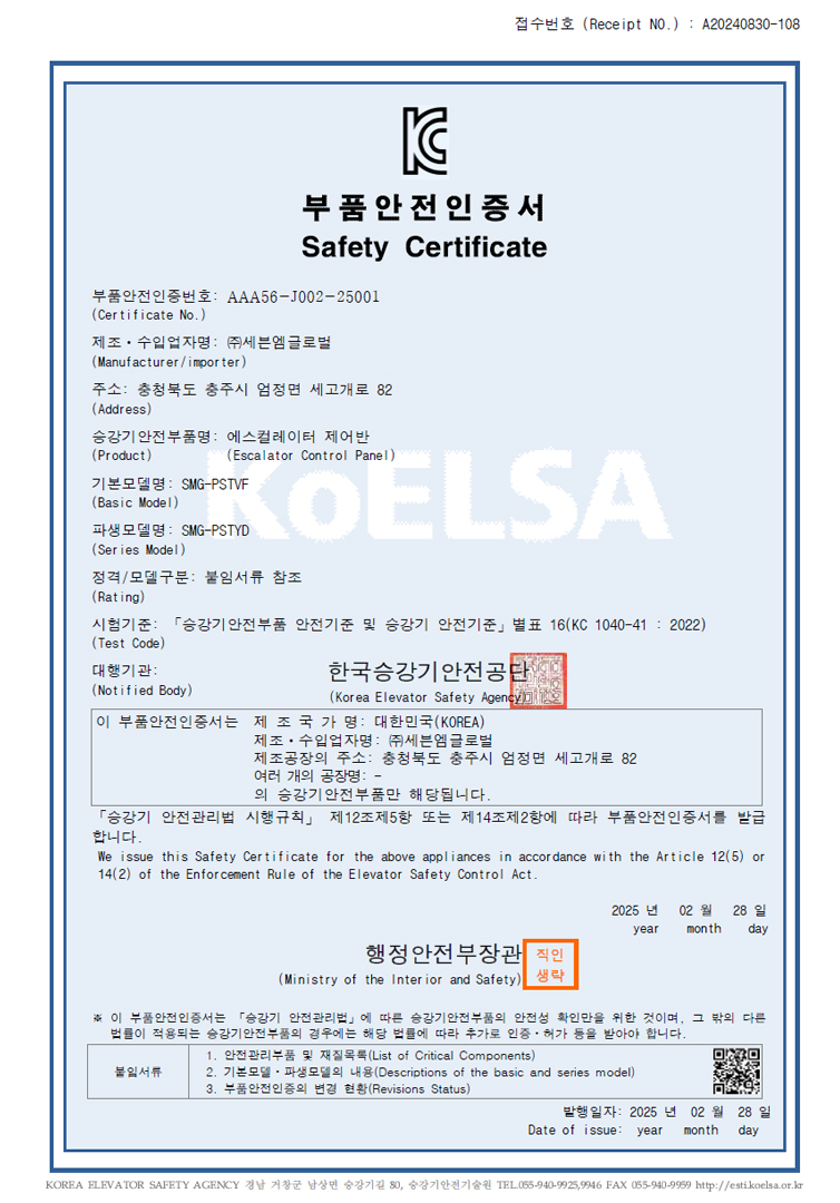 ㈜세븐엠글로벌은 최고 수준의 품질과 안전을 보장하기 위해 다양한 인증서를 보유하고 있습니다.